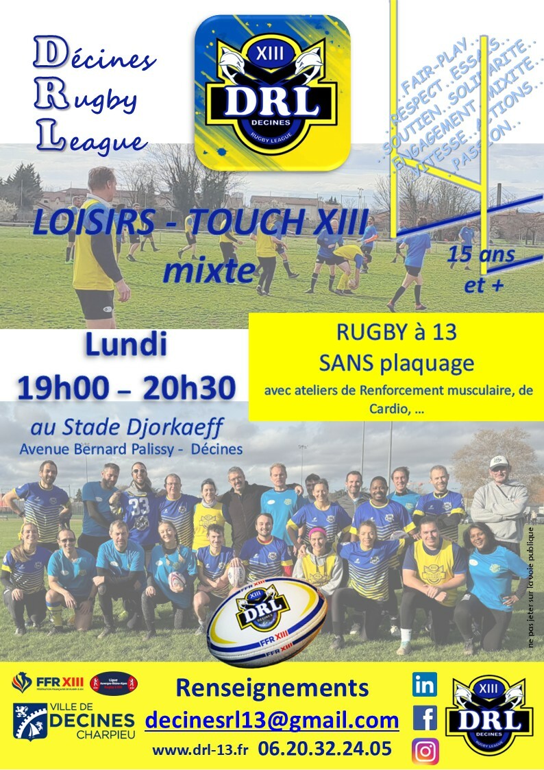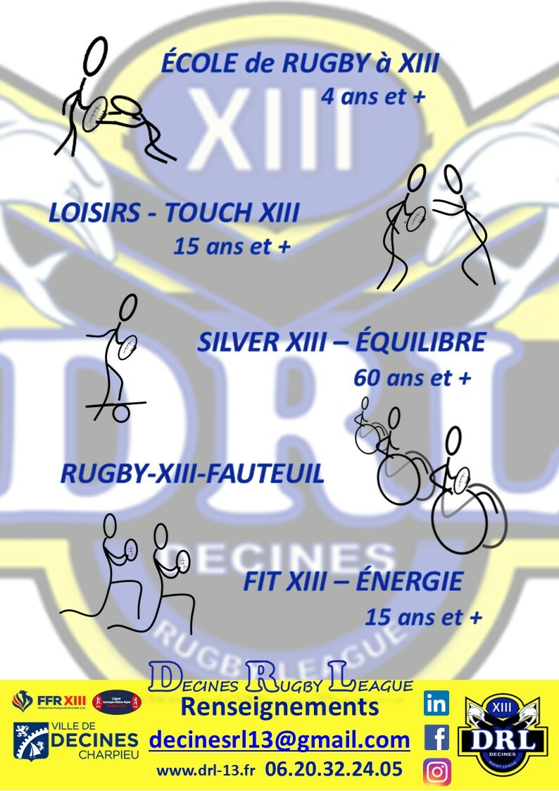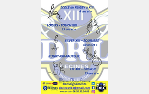 Venez nous rencontrer, nous découvrir, programmer votre inscription dans l'une de nos sections (Ecole de Rugby, Loisir Touch XIII, Silver XIII Equilibre, Rugby-XIII-Fauteuil, Fit XIII)