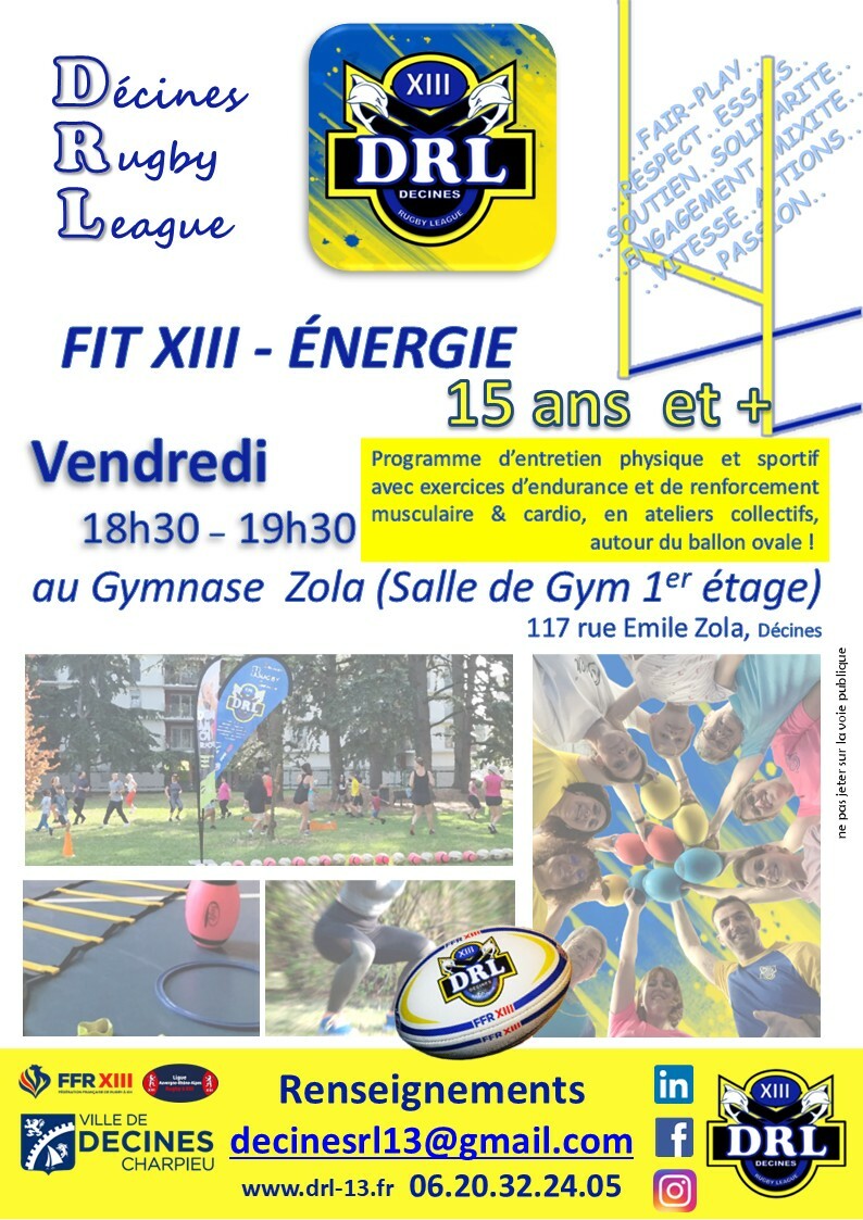 Vendredi 12 septembre de 18h30 à 19h30 au Gymnase Zola - salle du haut, REPRISE du FIT XIII