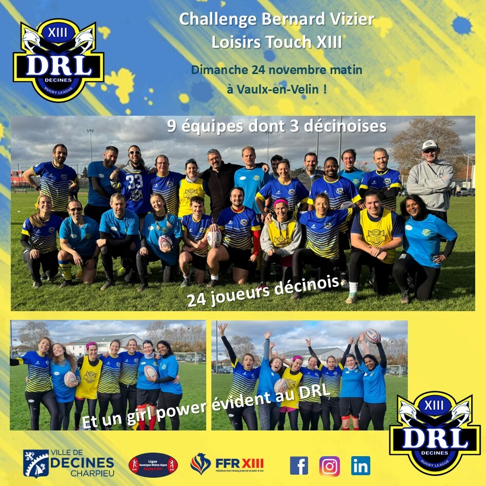 la 1ere รฉtape de la saison du Challenge Bernard Vizierย : les รฉquipes Loisir des clubs de Sainte Foy Rugby League, de CRL, de VVRL XIII - Vaulx en Velin Rugby League XIII, des Tigers de Charpennes Tonkin et de Dรฉcines Rugby League XIII qui jouent en #TouchXIII, soit prรจs de 98 participants รฉtaient prรฉsents sur les terrains et sous le vent (9 รฉquipes) !